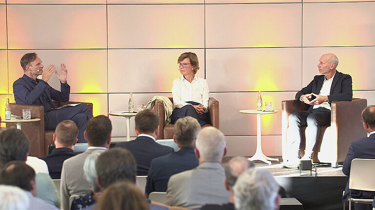 Dr. Marie-Luise Wolff diskutierte, unter der Moderation von Dr. Wulf Schmiese, mit dem ausgewiesenen Fachmann für die Mobilität der Zukunft. Auf Basis von empirischen Studien durchleuchtete Professor Dr. Bratzel die Innovationstrends der Automobilbranche sowie die Geschäftsmodelle großer IT-Konzerne.