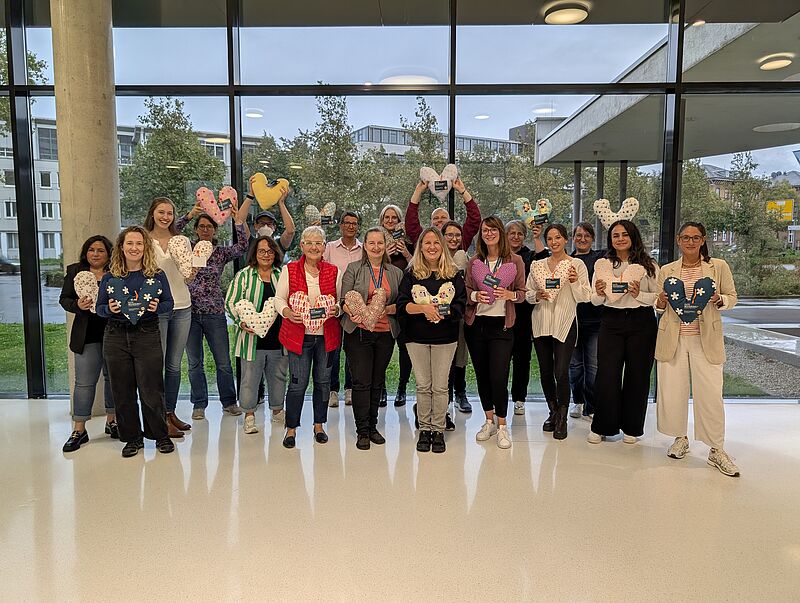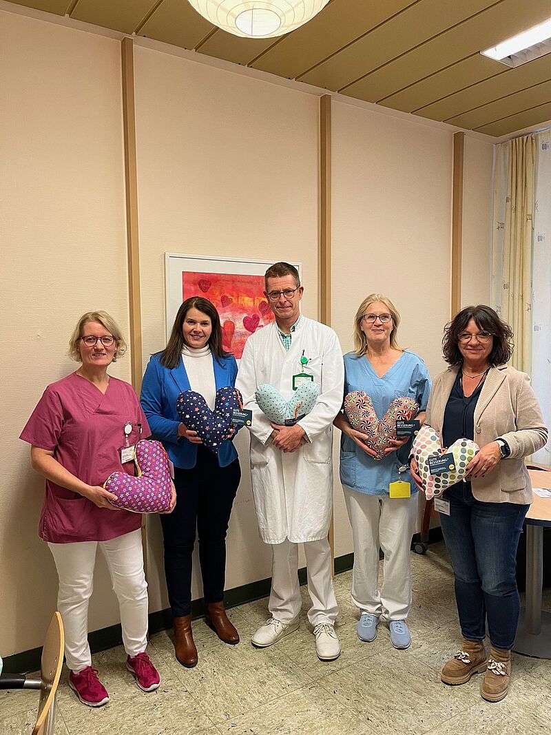 MAINZ (ac) – Für die ENTEGA-Belegschaft ist es längst eine Herzensangelegenheit: 22 Kolleginnen und Kollegen haben auch in diesem Jahr bunte Herzkissen für Brustkrebspatientinnen genäht. Insgesamt rund 100 der weichen Schmerzlinderer hat ENTEGA-Geschäftsführerin Antje Winter am Dienstag (12. November 2024) mit freundlichen Genesungswünschen an Prof. Dr. med. Arnd Hönig – Chefarzt und Leitung des Brustkrebszentrums und Gynäkologischen Krebszentrums im Marienhaus Klinikum Mainz – übergeben. „Dieses emotionale Projekt hat bei ENTEGA inzwischen Tradition. Unsere Mitarbeiterinnen und Mitarbeiter haben bereits zum zehnten Mal Herzkissen für Brustkrebspatientinnen genäht. Die weichen Herzkissen können nicht nur helfen, den Wundschmerz nach einer Brustkrebsoperation zu lindern, sie tun auch den Patientinnen in der Seele gut. Wir alle wünschen den Empfängerinnen gute Besserung“, sagte Antje Winter.