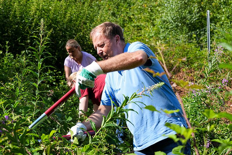 Doch das Pflanzen der Bäume ist nur der erste Schritt. Die jungen Bäume benötigen Pflege, um nicht von anderen Pflanzen überwuchert zu werden. Am vergangenen Mittwoch beteiligten sich 15 engagierte Mitarbeiterinnen und Mitarbeiter aus dem gesamten ENTEGA-Konzern an einer Freiwilligenaktion, um den jungen Bäumen Luft und Licht zu verschaffen. Auch ENTEGA-Vorstand Thomas Schmidt packte tatkräftig mit an. Ausgestattet mit festen Handschuhen und Gartenscheren, arbeiteten die Freiwilligen in einem Waldstück bei Modautal.