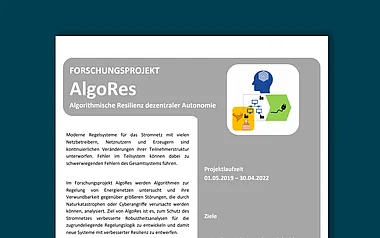 Das Ziel von AlgoRes ist es, verbesserte Robustheitsanalysen für die zugrundeliegende Regelungslogik zu entwickeln. Damit sollen dann neue Systeme mit verbesserter Resilienz entworfen werden. Besondere Aufmerksamkeit kommt dabei intentionellen Störungen wie im Falle von Cyberangriffen zu. Regelsysteme für das Stromnetz stellen großflächig über viele Kraftwerke, Netzbetreiber und Netznutzer verteilte IT-Systeme dar, die einer kontinuierlichen Veränderung ihrer Teilnehmerstruktur unterworfen sind. In diesem Umfeld fokussiert AlgoRes auf dezentrale Regelsysteme ohne eine dezidierte zentrale Koordinationsfunktion, welche einen besonders kritischen Fehlerpunkt darstellen würde.