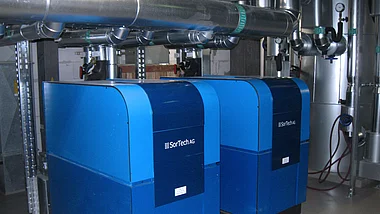 Um die Kälteleistung und den Energieverbrauch weiter zu optimieren, hat die ENTEGA Abwasserreinigung GmbH & Co. KG im Zuge eines geförderten Projektes, zwei abwärmebetriebene Adsorptionskältemaschinen vom Typ Sortech ACS 15 mit einer Kälteleistung von 2 x 16 kW zur Kühlung und Klimatisierung des Büro- und Betriebsgebäudes des Zentralklärwerks installiert.