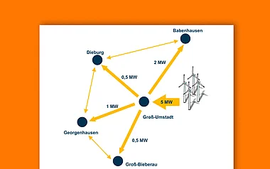Damit die Windkraftanlagen nicht abgeregelt werden müssen, soll die überschüssige Energie in benachbarten Kommunen in der Region genutzt werden. Möglich wird dies durch Umschaltungen im 20-kV Netz und das Anpassen eines Speisebereiches. Die Belastung der Übertragungsnetze soll durch neu zu entwickelnde Techniken und Systeme minimiert und damit Netzausbau vermieden werden (siehe Beispielgrafik).